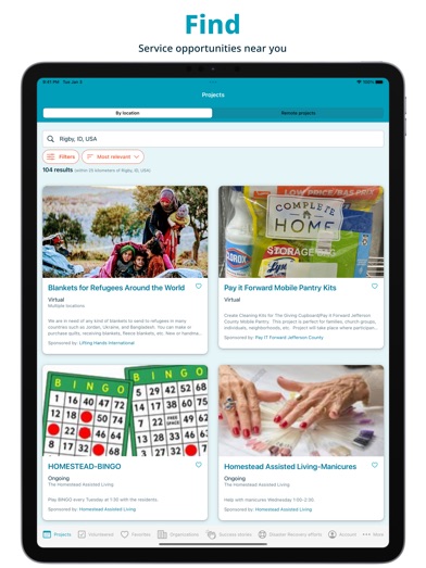 Location: Use location to find projects and organizations near you